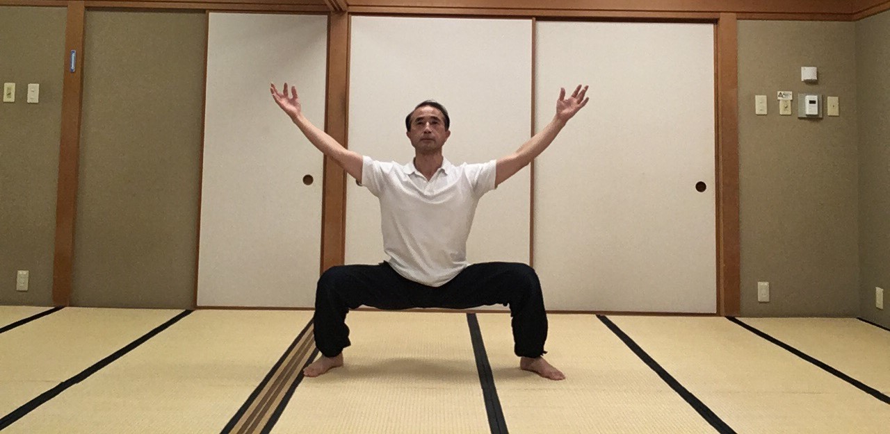 站椿功で下半身に負荷をかけるときは、正しい姿勢になっていないと体を痛めます。反対に良い姿勢でいると、腰や膝に負担がかかりませんので、いつまでもその形でいることが出来ます。站椿功には虎を抑えるイメージや竜が舞い降りてくるイメージ、クマがサケの遡上を待ち受けているイメージ、宇宙空間で無重力、夏の湖で自然と一体になる、浮いているボールにぶら下がる、マグマのパワーを炎にして吹き上げる、など色々なイメージを使って苦しい姿勢を気持ち良いものに変えていきます。立ち始めてすぐは、筋肉の疲れを感じますが、しだいに脳波が変わると疲れは消えていきます。大地に足裏が密着し、大地のパワーをもらっていることを感じられます。太ももと脹脛が鍛えられます。脹脛は第二の心臓となって心臓の運動を助け、血圧の正常化をもたらします。